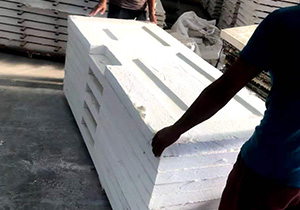 7、煙道板,主要成份為硅微粉、活性高純氧化鎂、氯化鎂、抗堿玻纖布、柔性極佳的植物纖維、不燃質輕的珍珠巖、粉煤灰、化學穩定立德粉、高性能改性劑經板材成型機滾壓成板材,將板材割成需要的大小,再拼接成組合式高強耐火排煙道。